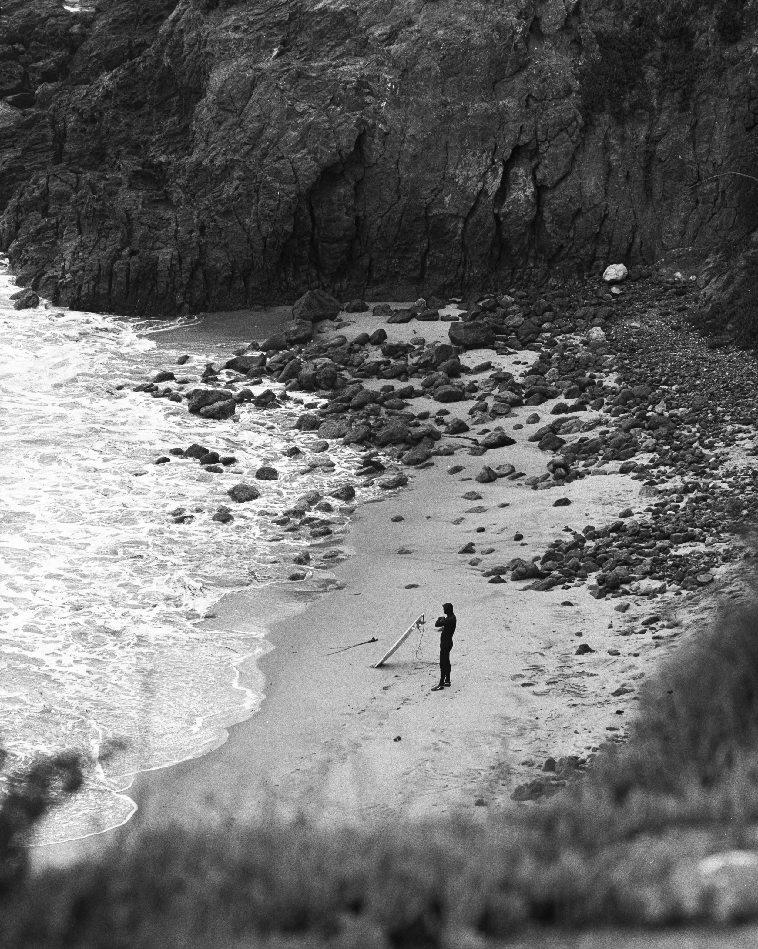 Your surf session photographed on a single roll of film, hand-processed in my darkroom, and finished as a 1/1 archival 8×10 fiber print of your choice.